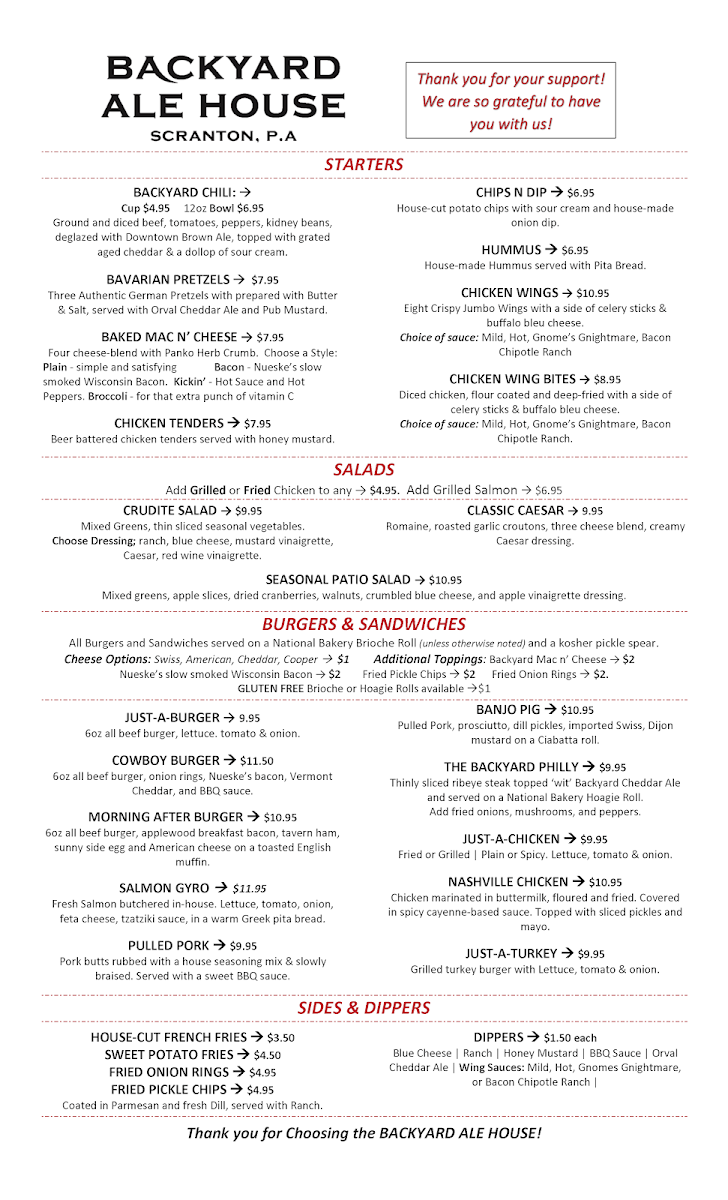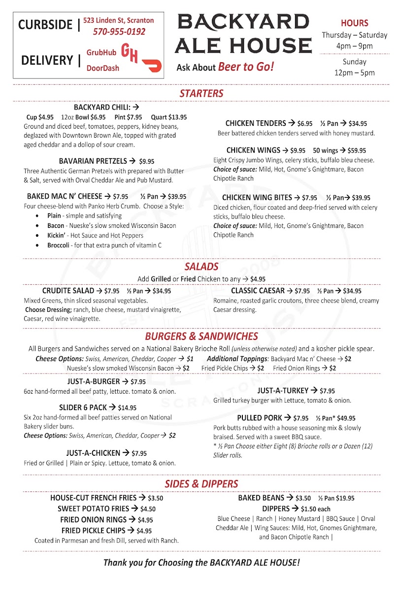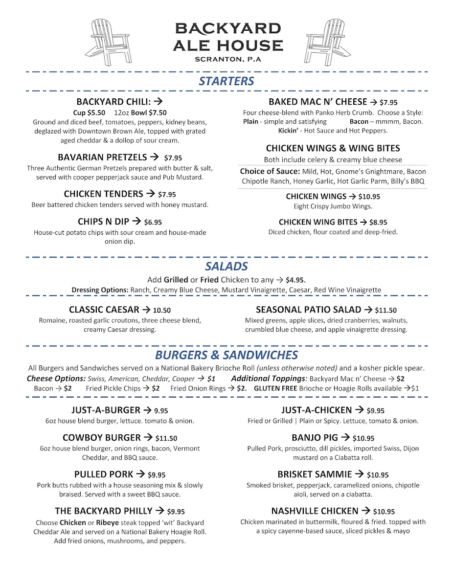 Welcome to Backyard Ale House, a hidden gem located at 523 Linden St, Scranton, PA. This laid-back establishment offers a menu brimming with delightful options, making it a must-visit for both locals and visitors. Diners rave about their expertly crafted sandwiches, notably the chicken sandwich and brisket variety, praised for their flavor and quality.